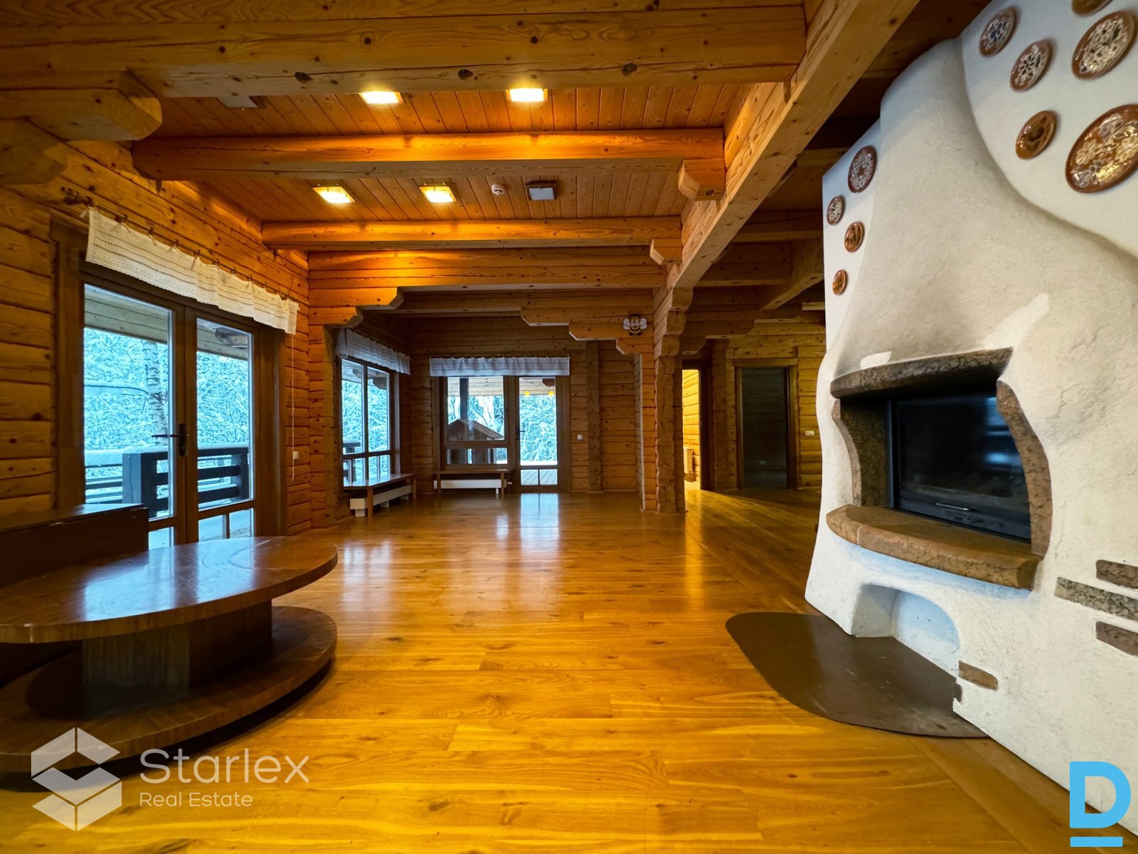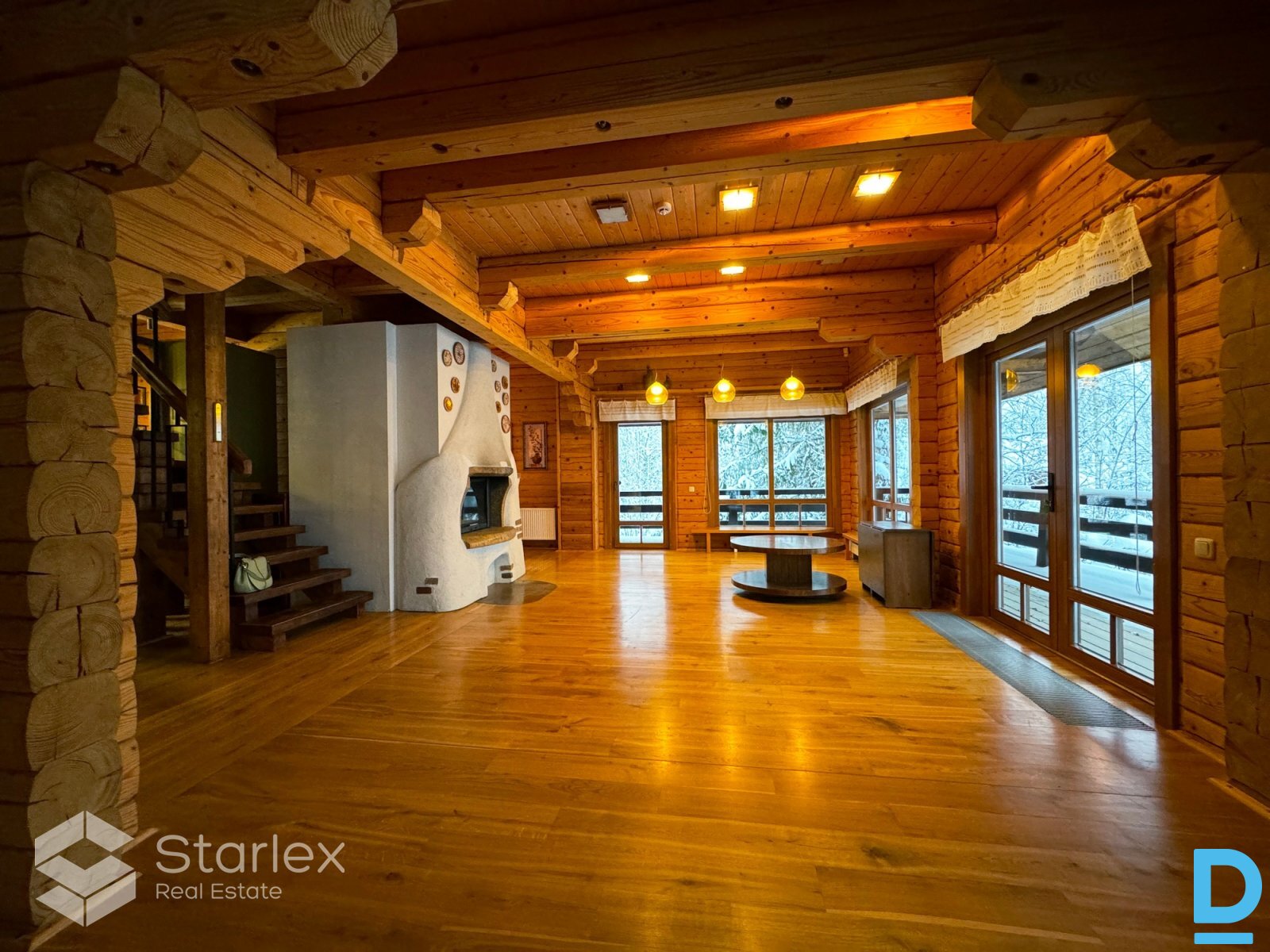 | Pārdod 3-stāvu guļbaļķu savrupmāju ar 1.32 ha zemes gabalu un privātu ezeru Amatciemā. Māja ir nodota ekspluatācijā, atrodas teicamā vizuālā un tehniskā stāvoklī, gandrīz atbrīvota no mēbelēm. Mājas plānojums: Pamatstāvā izvietota garāža, katlu telpa, sanmezgls ar dušu, viena istaba un terase. Pamatstāva iekštelpu platība 85,9 m² + terase 57 m². Pirmajā stāvā izvietota plaša dzīvojamā istaba ar kamīnu, ar virtuves tehniku aprīkota virtuve, ēdamistaba, kabinets, vannasistaba un terase visapkārt 1. stāvam ar četrām izejām uz tās. Pirmā stāva iekštelpu platība 105,8 m² + terase 120 m². Otrajā stāvā izvietotas 4 guļamistabas un divi sanmezgli. Viena no guļamistabām ar privātu ieeju vannasistabā. Otrā stāva kopējā platība - 118 m². Kopējā mājas iekštelpu platība - 310 m². Mājā ir priedes koka dēļu grīdas un priedes koka kāpnes. Divkameru koka pakešu logi. Māja labi tur siltumu - nav auksti ziemā un nav karsti vasarā. Ciemata centrālā ūdensapgāde no 175 m dziļa artēziskā urbuma un ciemata centrālās kanalizācijas sistēma. Apkure un siltais ūdens no zemes siltumsūkņa. Ar ūdeni apsildāmās grīdas 2. stāva vannasistabās. Ciemata optiskais internets. Apsardzes un ugunsdrošības signalizācija. Ezerā izbūvēta pamatīga laipa ar ozolkoka sēdekļiem. Ezera dziļums līdz 3,5 metriem. Tajā mājo dažādas zivis: karpa, līnis, karūsa, līdaka. No zemes gabala ir pieeja vēl vienam ezeram. Īpašums ir izvietots Amatciema centrālajā daļā. Asfaltēts piebraucamais ceļš. Uz zemes gabala ir piemērota vieta pirts ēkas būvniecībai. Īpašuma teritorijā ir skaists jauktu koku mežs ar bagātīgu sēņu ražu rudenī. Amatciems - gleznainā vietā izveidots vienota arhitektoniskā stila savrupmāju ciems, kas atrodas 12 km attālumā no tuvākās pilsētas Cēsīm un 80 km attālumā no Rīgas. Amatciema kopējā teritorija ir 300 ha, un šobrīd ciematā dzīvo jau 100 ģimenes. Iedzīvotāju ērtībai Amatciemā nodrošinātas visas mūsdienu komunikācijas, kā arī tiek veikta kopējo teritoriju un kopējās infrastruktūras ikdienas uzturēšana. Ciema teritorijā ir izveidota vienota infrastruktūra ar nodrošinātu apsardzi, videonovērošanu, ceļu apgaismošanu un barjerām iebraukšanai ciemā. | |